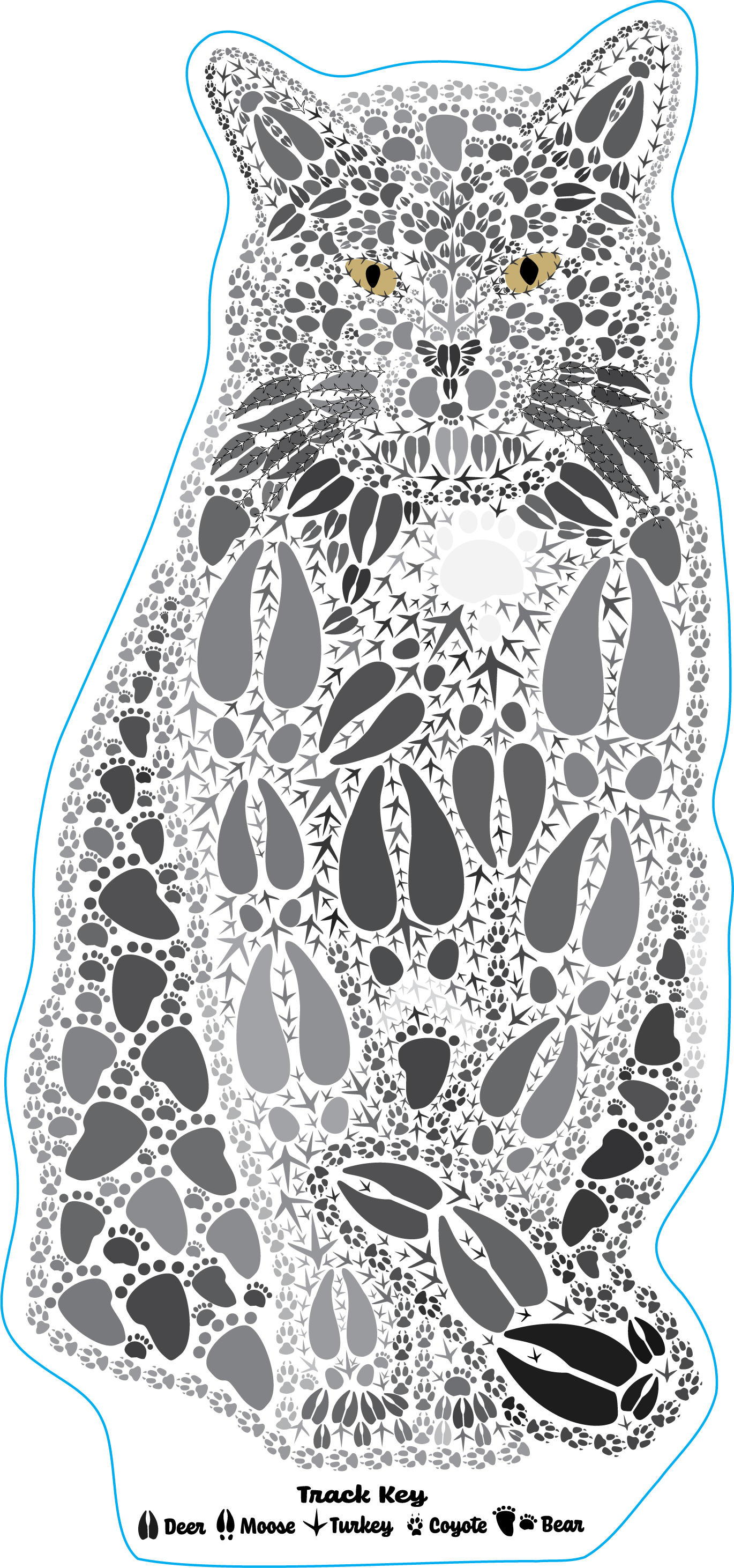 Welcome to our collection of waterproof vinyl stickers featuring intricate designs made from real wild animal tracks including deer, moose, bear, coyote, and turkey. Proudly made in the USA, our stickers are crafted with premium-grade vinyl to ensure durability and water-resistance on any smooth surface.